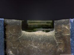 Somewhat related to hardness is another mechanical property toughness, which is a material's ability to resist breakage from forceful impact. The toughness of natural diamond has been measured as 50–65 MPa·m1/2.[clarification needed][32][33] This value is good compared to other ceramic materials, but poor compared to most engineering materials such as engineering alloys, which typically exhibit toughness over 80 MPa·m1/2. As with any material, the macroscopic geometry of a diamond contributes to its resistance to breakage. Diamond has a cleavage plane and is therefore more fragile in some orientations than others. Diamond cutters use this attribute to cleave some stones, prior to faceting.[34] "Impact toughness" is one of the main indexes to measure the quality of synthetic industrial diamonds.