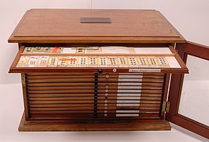 While at Oxford, Sherrington kept hundreds of microscope slides in a specially constructed box labelled "Sir Charles Sherrington's Histology Demonstration Slides". As well as histology demonstration slides, the box contains slides which may be related to original breakthroughs such as cortical localization in the brain; slides from contemporaries such as Angelo Ruffini and Gustav Fritsch; and slides from colleagues at Oxford such as John Burdon-Sanderson – the first Waynflete Chair of Physiology – and Derek Denny-Brown, who worked with Sherrington at Oxford (1924–1928)).[28]