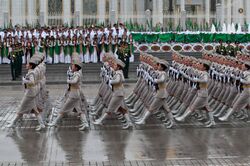 The Armed Forces of Turkmenistan currently funds 2 high ranking educational institutions: The Military Academy of Turkmenistan and the Military Institute of the Ministry of Defense of Turkmenistan. Aside from those two schools, there are several military schools around the country, specializing in the training of personnel of a branches of service. In the early 1990s when the armed forces were rapidly being developed, many officers were trained in the Russian Federation's Ministry of Defense, while at least 300 officers were sent to schools in Turkey.[1] On 3 October 1992, the Turkmen State University created the first Turkmen educational department.[2] This article lists institutions of the Turkmen Armed Forces based on its respective agency and service branch.[3][4]