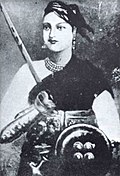 Lakshmibai, Rani of Jhansi, one of the principal leaders of the Great Uprising of 1857, who had lost her kingdom by the Doctrine of lapse