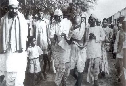 Gandhi made his political debut in India in 1917 in Champaran district in Bihar, near the Nepal border, where he was invited by a group of disgruntled tenant farmers who, for many years, had been forced into planting indigo (for dyes) on a portion of their land and then selling it at below-market prices to the British planters who had leased them the land.[78] Upon his arrival in the district, Gandhi was joined by other agitators, including a young Congress leader, Rajendra Prasad, from Bihar, who would become a loyal supporter of Gandhi and go on to play a prominent role in the Indian independence movement. When Gandhi was ordered to leave by the local British authorities, he refused on moral grounds, setting up his refusal as a form of individual Satyagraha. Soon, under pressure from the Viceroy in Delhi who was anxious to maintain domestic peace during wartime, the provincial government rescinded Gandhi's expulsion order, and later agreed to an official enquiry into the case. Although the British planters eventually gave in, they were not won over to the farmers' cause, and thereby did not produce the optimal outcome of a Satyagraha that Gandhi had hoped for; similarly, the farmers themselves, although pleased at the resolution, responded less than enthusiastically to the concurrent projects of rural empowerment and education that Gandhi had inaugurated in keeping with his ideal of swaraj. The following year Gandhi launched two more Satyagrahas—both in his native Gujarat—one in the rural Kaira district where land-owning farmers were protesting increased land-revenue and the other in the city of Ahmedabad, where workers in an Indian-owned textile mill were distressed about their low wages. The satyagraha in Ahmedabad took the form of Gandhi fasting and supporting the workers in a strike, which eventually led to a settlement. In Kaira, in contrast, although the farmers' cause received publicity from Gandhi's presence, the satyagraha itself, which consisted of the farmers' collective decision to withhold payment, was not immediately successful, as the British authorities refused to back down. The agitation in Kaira gained for Gandhi another lifelong lieutenant in Sardar Vallabhbhai Patel, who had organised the farmers, and who too would go on to play a leadership role in the Indian independence movement.[79]