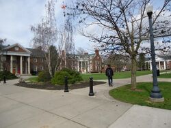 There are seven fraternities with houses on campus, situated on the fraternity quadrangle near the First-Year Quad.[145] Smaller fraternities and all sororities occupies floors in residential buildings in Jackson Court and Hill Court.[146][147] There are a number of off-campus fraternities situated across the Genesee River on Plymouth Avenue and Genesee Street.