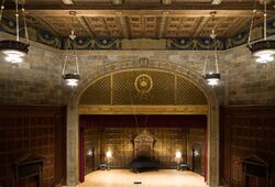 The Boar's Head Dinner is an annual medieval student feast that was first celebrated on December 17, 1934.[152] Students dress up in costumes, and the setting resembles a 16th Century English Court.[153] The first dinners were held in Todd Union and are currently held at the Feldman Ballroom in Douglas Commons. Among the evening's events is an annual 'Reading of the Boar', a retelling of the Boar's Head legend by a member of the faculty.[154]