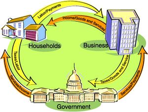 The circular flow diagram illustrates how money, services, and goods are exchanged within the various participants of an economy.