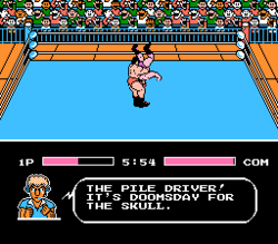 Tecmo World Wrestling is a Nintendo Entertainment System professional wrestling game for one or two players released in 1989 where the player can control one of ten fictional international professional wrestlers. This is the first wrestling game to feature a play-by-play announcer, the animated Tom Talker, although his speech was only text bubbles. The game's text, e.g. Tom Talker's commentary, was translated from the Japanese game almost directly, leading to instances of Engrish. For example the Northern Lights Suplex is called "Northern Right Suplex". The game was released in Japan under the name Gekitou Pro Wrestling!! Toukon Densetsu (激闘プロレス!! 闘魂伝説 Fierce Fighting Wrestling!! Legend of Fighting Spirit)