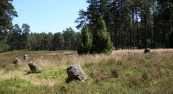 Many Wielbark graves were flat, but kurgans are also characteristic and common. In the case of kurgans, the grave was covered with stones, which were surrounded by a circle of larger stones. These were covered with earth and a solitary stone or stela often put on top. Such a kurgan could include one or several individual burials, have a diameter of up to a dozen or so meters, and be up to 1 meter high. Some burial grounds feature large stone circles of massive boulders up to 1.7 meters high, separated by several meters of spaces, sometimes connected by smaller stones; the whole structure is 10–40 meters in diameter. In the middle of the circles, one to four stelae were placed, and sometimes a single grave. The stone circles are believed to be the locations of meetings of Scandinavian (see below) tings (assemblies or courts). The single graves inside the circles are probably those of human sacrifices meant to propitiate the gods and assure their support for the deliberations. A stone kurgan cemetery was found in Węsiory, Kartuzy County; another burial site with 10 large stone circles was discovered in Odry, Chojnice County, both dated 2nd century CE.[24]