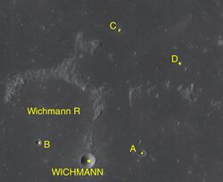 By convention these features are identified on lunar maps by placing the letter on the side of the crater midpoint that is closest to Wichmann.