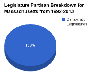 The chart below shows the partisan composition of the Office of the Governor of Massachusetts, the Massachusetts State Senate and the Massachusetts House of Representatives from 1992 to 2013.