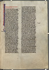 His vivid accounts of teachers and students provide some of the most valuable insights into the early days of the University of Paris.[3] When Abelard withdrew from Paris, John studied under Master Alberic and Robert of Melun. In 1137, John went to Chartres, where he studied grammar under William of Conches, and rhetoric, logic and the classics under Richard l'Evêque, a disciple of Bernard of Chartres.[4] Bernard's teaching was distinguished partly by its pronounced Platonic tendency, and partly by the stress laid upon literary study of the greater Latin writers. The influence of the latter feature is noticeable in all of John of Salisbury's works.