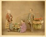 In some economies the work of itinerant selling was left to a greater or lesser extent to nomadic minorities, such as gypsies, travellers, or Yeniche who offered a varied assortment of goods and services, both evergreens and (notoriously suspicious) novelties. In 19th-century USA, peddling was often the occupation of immigrant communities including Italians, Greeks and Jews.[12] The more colourful peddlers were those that doubled as performers, healers, or fortune-tellers.[13]