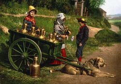 Throughout much of Europe, suspicions of dishonest or petty criminal activity was long associated with peddlers and travellers.[22][23] Regulations to discourage small-scale retailing by hawkers and peddlers, promulgated by English authorities in the 15th and 16th centuries and reinforced by the Church, did much to encourage stereotypical and negative attitudes towards peddlers. From the 16th century, peddlers were often associated with pejorative perceptions, many of which persisted until well into the 19th and 20th centuries.[24]