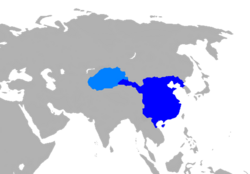 During the Tang dynasty, a series of expeditions were conducted against the Western Turkic Khaganate and their vassals: the oasis states of southern Xinjiang.[54] Campaigns against the oasis states began under Emperor Taizong with the annexation of Gaochang in 640.[55] The nearby kingdom of Karasahr was captured by the Tang in 644 and the kingdom of Kucha was conquered in 649.[56] The Tang Dynasty then established the Protectorate General to Pacify the West (安西都護府) or Anxi Protectorate, in 640 to control the region.