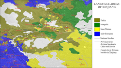 | • Uyghur | شىنجاڭ ئۇيغۇر ئاپتونوم رايونى (Shinjang Uyghur Aptonom Rayoni) |
