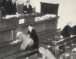 The Serbians' hatred for Radić grew worse, and Serbian publications openly called for his death.[33] This finally resulted in bloodshed when Serbian Radical Party MP Puriša Račić brought a gun to parliament and shot wildly at the Croatian delegation, killing Radić and two other MPs.[34] Goddamn.
