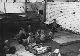 Croatia became a horrific dictatorship that began a reign of terror, starting with a decree that made "offending the nation of Croatia" a capital offense and continuing with a series of anti-Semitic laws and laws requiring conversion to Catholicism.[37] Croatian policies went into full force even before the Nazis managed it, and Croatian atrocities against the Serbs became the first attempt at wholesale genocide in the entire war.[38] The Ustaše built 40 concentration camps, the worst being the Jasenovac camp, one of the largest in Europe and sometimes called the "Yugoslav Auschwitz".[37]