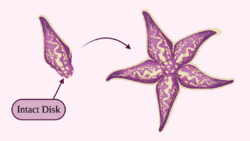 Bidirectional regeneration is a robust form of regeneration defined by the ability to regrow the main body axis after whole body severance.[7][10][11] Starfish that exhibit disk-dependent bidirectional regeneration are capable of regenerating a full starfish when less than half of the original starfish is intact, given that all or part of the central disk is present. The presence of the central disk gives the detached limb access to its original digestive system and mouth, allowing the starfish to move to find food, eat, and hide from predators during recovery.[11]