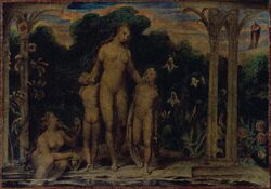 The influence of the evil tempter of humanity brought about the sinful relation of David and Bathsheba. The Midrash portrays the influence of Satan bringing about the sinful relation of David and Bathsheba as follows: Bath-sheba was making her bathing on the roof of her house behind a screen of wickerwork, when Satan came in the disguise of a bird; David, shooting at it, struck the screen, splitting it; thus Bathsheba was revealed in her beauty to David (ib. 107a). Bath-sheba was providentially destined from the Creation to become in due time the legitimate wife of David; but this relation was immaturely precipitated, and thus he became Bath-sheba's partner in sin (ib.).[15]