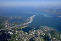 The Lower Lake Constance is loosely divided into three sections around the Island of Reichenau. The two German parts, the Gnadensee (lit.: "Lake Mercy") north of the island and north of the peninsula of Mettnau (the Markelfinger Winkel), and the Zeller See, south of Radolfzell and to the northwest of the Reichenau island, and the mainly Swiss Rheinsee (lit.: "Lake Rhine") – not to be mistaken for the Seerhein (lit.: "Rhine of the Lake(s)") at its start – to the south of the island and with its southwestern arm leading to its effluent in Stein am Rhein.[1][3]
