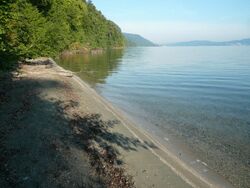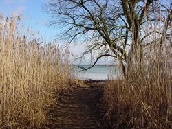 The shores of Lake Constance consist mainly of gravel. In some places there are also sandy beaches, such as the Rohrspitz in the Austrian section of the lake, the Langenargen and Marienschlucht.