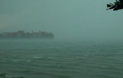 Similarly dangerous for those unfamiliar with the area, are the sudden stormy gusts of wind during summer thunderstorms. They constantly claim victims from the water sports fraternity. During a thunderstorm in July 2006, waves reached heights of up to 3.50 metres.
