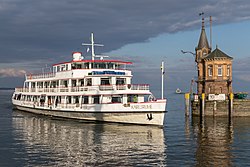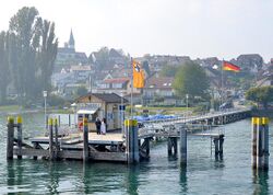 The harbour in Konstanz is also served by the Schweizerische Schifffahrtsgesellschaft Untersee und Rhein (URh), which operates via the Seerhein, Lower Lake and High Rhine to Schaffhausen.[30] It docks at the harbours of Kreuzlingen, Konstanz, Gottlieben, Ermatingen, Reichenau, Mannenbach, Berlingen, Gaienhofen, Steckborn, Hemmenhofen, Wangen, Mammern, Öhningen, Stein am Rhein, Diessenhofen, Büsingen and Schaffhausen. Radolfzell and Iznang are also linked by a boat line over the Lower Lake (to Konstanz).