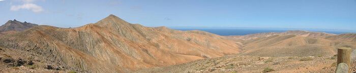 Fuerteventura is the oldest island in the Canary Islands dating back 20 million years to a volcanic eruption from the Canary hotspot.[24] The majority of the island was created about 5 million years ago and since then has been eroded by wind and precipitation. On the seabed off the West coast of the island rests an enormous slab of bedrock 22 km (14 mi) long and 11 km (7 mi) wide, which appears to have slid off the island largely intact at some point in prehistory, similar to the predicted future collapse of Cumbre Vieja, a geological fault on another Canary Island, La Palma. The last volcanic activity in Fuerteventura occurred between 4,000 and 5,000 years ago.