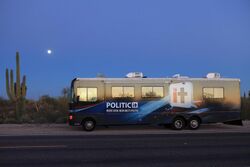 The company organized a national tour in a 34-foot Motorhome beginning on August 17, 2012, where it invited and interviewed every congressional, gubernatorial, and U.S. senate candidate in the Contiguous United States. Company representatives met with more than 200 candidates and produced video interviews which were shared on its YouTube channel in an attempt to create greater political transparency.[12] Company representatives visited each state in the Contiguous United States conducting these interviews between August 17, 2012, and election day, November 6, 2012.[13] The PoliticIt Mobile bus travelled more than 18,000 miles on the trip.[14]