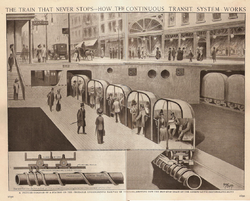 Conduit power was first designed in the steam age (c.1900) when power was transmitted mechanically from a series of steam-powered rotating screws, as shown in the illustration (left) also published by Harmsworth Popular Science.
