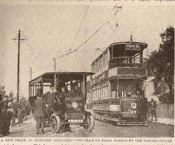 Trolleybuses use overhead cables which could also be used for cars, as shown in a photograph (right) carried by an encyclopedic magazine about 1910.