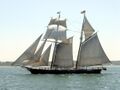 Designed for speed in the Baltimore Clipper tradition, schooner Shenandoah has two raked masts, gaff-rigged; two square sails; a staysail and two jibs.