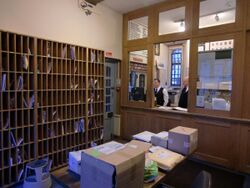 The University of Edinburgh, the majority of colleges at the universities of Cambridge, Durham and Oxford, as well as newer collegiate universities such as Lancaster University, University of York, and older universities like University of Bristol and St David's College, have members of staff called porters. There is normally a head porter and a team of other porters.[1] Their precise job roles vary from college to college. Oxbridge porters are highly sought after jobs.[2] Porters work in a section of the college called the porters' lodge, at the main entrance.