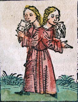 Conjoined twin sisters from Nuremberg Chronicle (1493)