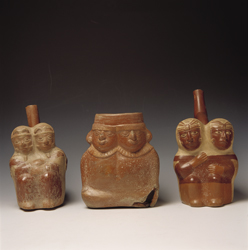 Moche ceramics depicting conjoined twins. 300 CE Larco Museum Collection Lima, Peru