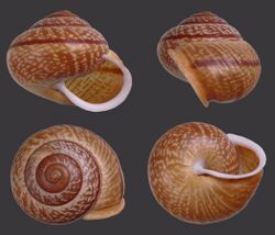 A possible exception may concern some of the European clausiliids of the subfamily Alopiinae.[8] They are obligatory calciphiles living in isolated colonies on limestone outcrops.[8] Several sets of species differ only in the direction of coiling, but the evidence is inconclusive as to whether left- and right-handed shells live together.[8] Soos (1928, pp. 372–385) summarized previous discussions of the problem and concluded that the right- and left-handed populations were distinct species.[8] Others have stated that these populations were not distinct, and the question is far from settled.[8] The Peruvian clausiliid, Nenia callistoglypta Pilsbry (1949, pp. 216–217),{{full citation needed|date=December 2013} dromine species.[8]