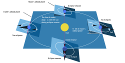 In astronomy, the new moon is the first lunar phase, when the Moon and Sun have the same ecliptic longitude.[2] At this phase, the lunar disk is not visible to the naked eye, except when it is silhouetted against the Sun during a solar eclipse.