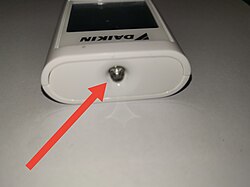 This type of controller uses an infrared blaster (IR blaster) to relay commands from a remote control to the air conditioner. The output of an IR blaster (like that of any infra-red remote) is invisible to the human eye because its wavelength is beyond the range of visible light. This controller is commonly used on mini-split air conditioners because it is simple and portable.