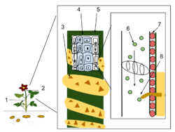 A report published in Science in 2006 demonstrated that dodder use airborne volatile organic compound cues to locate their host plants. Seedlings of C. pentagona exhibit positive growth responses to volatiles released by tomato and other species of host plants. When given a choice between volatiles released by the preferred host tomato and the non-host wheat, the parasite grew toward the former. Further experiments demonstrated attraction to a number of individual compounds released by host plants and repellence by one compound released by wheat. These results do not rule out the possibility that other cues, such as light, may also play a role in host location.[8][9]