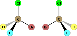 An undistorted tetrahedral sp3-hybridized carbon atom bearing four freely rotating rigorously identical substituents can be chiral if the substituents themselves are chiral. C(R)4 and C(S)4 are enantiomers without central carbon nomenclature, such as C-[(R)-C(H)(CH3)(OCH3)]4. C(R)3(S) and C(S)3(R) are sufficient. Homochiral twist-boat cyclohexane rings can be fused to obtain remarkably symmetric yet asymmetric [6.6]chiralane, point group T (not Th or Td), viewed down a C3-axis[7] and a C2-axis.[8] There is no nomenclature for the central carbon's chirality, though it possesses no point, plane, or higher improper axis of symmetry.