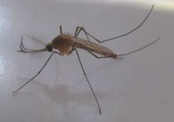 Notonecta glauca (common backswimmer) is a species of aquatic insect, and a type of backswimmer. This species is found in large parts of Europe, North Africa, and east through Asia to Siberia and China.[1] In much of its range it is the most common backswimmer species.[2] It is also the most widespread and abundant of the four British backswimmers.[3] Notonecta glauca are Hemiptera (true bug) predators,[2] that are approximately 13–16 mm in length.[4] Females have a larger body size compared to males.[2] These water insects swim and rest on their back (hence their common name "backswimmer" or "water boatman") and are found under the water surface.[5] Notonecta glauca supports itself under the water surface by using their front legs and mid legs and the back end of its abdomen and rest them on the water surface;[6] They are able to stay under the water surface by water tension, also known as the air-water interface (surface tension).[7] They use the hind legs as oars; these legs are fringed with hair and, when at rest, are extended laterally like a pair of sculls in a boat.[8] Notonecta glauca will either wait for its prey to pass by or will swim and actively hunt its prey. When the weather is warm, usually in the late summer and autumn, they will fly between ponds.[9][10] Notonecta glauca reproduce in the spring.[2]