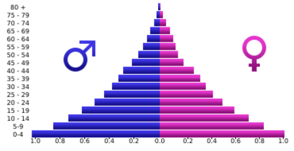 Another characteristic of Stage Two of the demographic transition is a change in the age structure of the population. In Stage One, the majority of deaths are concentrated in the first 5–10 years of life. Therefore, more than anything else, the decline in death rates in Stage Two entails the increasing survival of children and a growing population. Hence, the age structure of the population becomes increasingly youthful and start to have big families and more of these children enter the reproductive cycle of their lives while maintaining the high fertility rates of their parents. The bottom of the "age pyramid" widens first where children, teenagers and infants are here, accelerating population growth rate. The age structure of such a population is illustrated by using an example from the Third World today.