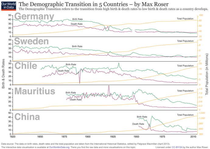 The Jews of Bohemia and Moravia were among the first populations to experience a demographic transition, in the 18th century, prior to changes in mortality or fertility in other European Jews or in Christians living in the Czech lands.[10] John Caldwell (demographer) explained fertility rates in the third world are not dependent on the spread of industrialization or even on economic development and also illustrates fertility decline is more likely to precede industrialization and to help bring it about than to follow it.[11]