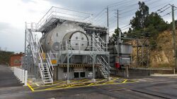 In addition to purpose-built units, existing steam or combustion turbines can be retrofit for use as a syncon. In this situation, the turbine can be retrofit with either an auxiliary starting motor, use the existing generator as an electric means of startup, or a synchronous self-shifting (SSS) clutch with the existing turbine/fuel source.[10] Using a separate starter motor is usually recommended instead of the existing generator for startup, as the generator shaft/coupling generally can't withstand the torques imposed on them during startup. Using purely electric startup methods, the syncon relies on the starter motor to provide an initial startup, and the generator or auxiliary motor provide the system with the necessary rotational inertia to produce reactive power. With the SSS clutch retrofit, the existing turbine setup is largely reused. Here, the turbine uses its existing fuel source to start and sync to the grid, which is when the SSS clutch disconnects the turbine and generator. The generator thus uses grid energy to keep spinning, to provide leading or lagging reactive power as needed. Each setup has its own advantages and disadvantages: the electric drive only systems do not require combustion from the old turbines, where an old generation system would generally produce more emissions than a newer one of the same fuel type while the combustion driven system would have the ability to alternate between generating real and reactive power as needed.[11]