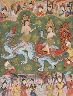 Houris, who live in paradise, are described as women who will accompany faithful Muslims in Paradise.[23] Muslim scholars differ as to whether they refer to the believing women of this world or a separate creation, with the majority opting for the latter.[24]