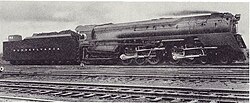 The next usage of the duplex type was the Pennsylvania Railroad's single S1, designed to meet a requirement to operate a 1,200 short tons (1,070 long tons; 1,090 t) train at 100 mph (160 km/h) on level track and able to accelerate to that speed easily. In excess of 4,000 hp (3.0 MW) was necessary for that requirement, and to meet it Baldwin and the PRR created possibly the largest passenger steam locomotive ever built: a 6-4-4-6 locomotive 140 feet 2 1⁄2 inches (42.74 m) long and weighing 1,060,000 lb (480,000 kg) with tender. It was, in fact, too large to work over the majority of the PRR's system and was placed into service only between Chicago, Illinois and Crestline, Ohio (283 miles [455 km]). In service after December 1940, it proved powerful and capable but prone to wheelslip and surging, presaging the problems with later duplex designs. By and large, its flaws were written-off as simply the teething troubles of an early, first-cut prototype. It was taken out of service in 1946. This locomotive got the nickname "The Big Engine"