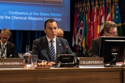 Ambassador Agustín Vásquez Gómez of the Republic of El Salvador, chairing the OPCW's Fourth Review Conference, November 2018