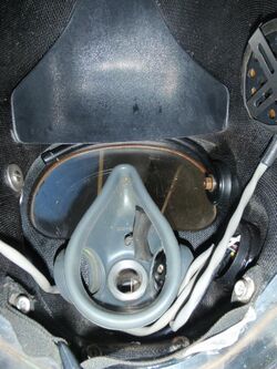 A full-face mask encloses both mouth and nose, which reduces the risk of the diver losing the air supply compared to a half mask and demand valve. Some models require a bailout block to provide alternative breathing gas supply from the umbilical and bailout cylinder, but are not suitable for accepting an alternative air supply from a rescue diver, while a few models accept a secondary demand valve which can be plugged into an accessory port (Draeger, Apeks and Ocean Reef).[22][23] The unique Kirby Morgan 48 SuperMask has a removable DV pod which can be unclipped to allow the diver to breathe from a standard scuba demand valve with mouthpiece.[24]