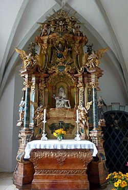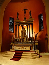 Even within an elevated sanctuary, the altar itself is often placed on a higher platform set off by one or more steps. The platform is known as the predella.[30]