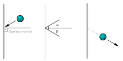 Collisions play an important role in cue sports. Because the collisions between billiard balls are nearly elastic, and the balls roll on a surface that produces low rolling friction, their behavior is often used to illustrate Newton's laws of motion. After a zero-friction collision of a moving ball with a stationary one of equal mass, the angle between the directions of the two balls is 90 degrees. This is an important fact that professional billiards players take into account,[2] although it assumes the ball is moving without any impact of friction across the table rather than rolling with friction. Consider an elastic collision in two dimensions of any two masses m1 and m2, with respective initial velocities u1 and u2 where u2 = 0, and final velocities V1 and V2. Conservation of momentum gives m1u1 = m1V1 + m2V2. Conservation of energy for an elastic collision gives (1/2)m1|u1|2 = (1/2)m1|V1|2 + (1/2)m2|V2|2. Now consider the case m1 = m2: we obtain u1 = V1 + V2 and |u1|2 = |V1|2 + |V2|2. Taking the dot product of each side of the former equation with itself, |u1|2 = u1•u1 = |V1|2 + |V2|2 + 2V1•V2. Comparing this with the latter equation gives V1•V2 = 0, so they are perpendicular unless V1 is the zero vector (which occurs if and only if the collision is head-on).