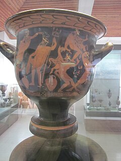 Near Thelpusa the river Ladon descended to the sunctuary of Demeter Erinys (Demeter-Fury). During her wandering in search of her daughter Demeter changed into a mare to avoid Poseidon. Poseidon took the form of a stallion and after their mating she gave birth to a daughter whose name was not allowed to be told to the unitiated and a horse called Arion (very swift). Her daughter obviously had the shape of a mare too. At first Demeter became angry and she was given the surname Erinys (fury) by the Thelpusians.[30][10] The Erinyes were deities of vangeance, and Erinys had a similar function with the goddess Dike (Justice).[35] In the very old myth of Thelpusa Demeter-Erinys and Poseidon are divinities of the underworld in a pre-mythic period. Poseidon appears as a horse. In Greek folklore the horses had chthonic associations and it was believed that they could create springs.[10] In European folklore the water-creatures or water-spirits appear with the shape of a horse or a bull. In Greece the river god Acheloos is represented like a bull or a man-bull.[36] Many people when sacrificed to Demeter should make a premilinary sacrifice to Acheloos [30]