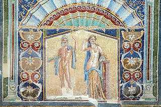 Poseidon and Amphitrite. Ancient Roman fresco (50-79 AD), Pompeii, Italy.